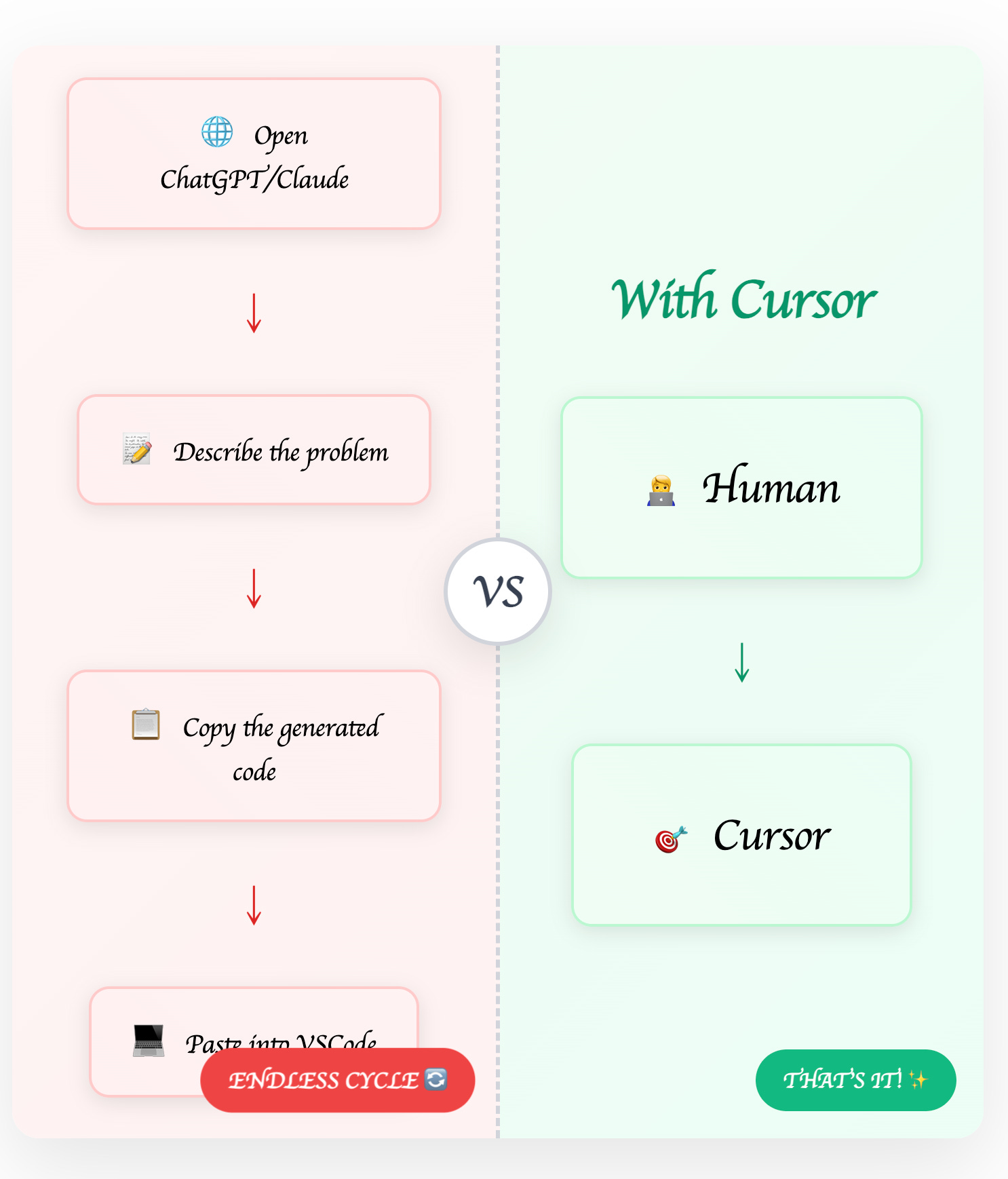 They saw developers copying code from ChatGPT, pasting into VSCode, running it, fixing errors, repeating. Painful. So they brought everything together. Smart move.